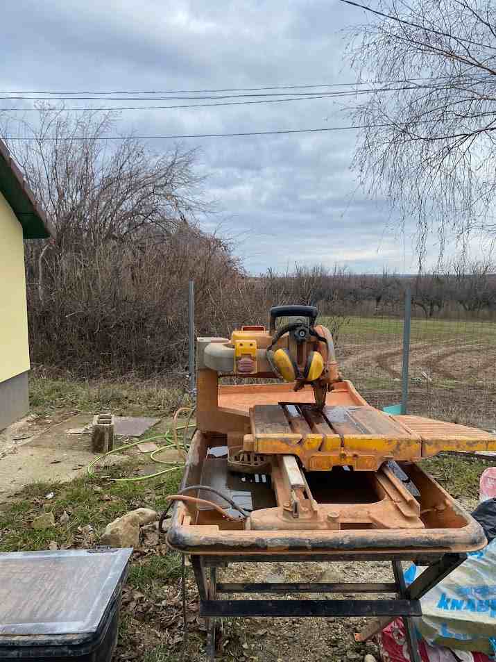 Rezačku umiestnime čo najbližšie k miestu práce. Používame vodnú pílu, ktorá minimalizuje prach. V chladnejších mesiacoch pracujeme v interiéri, pričom vďaka fóliám a vode udržiavame čistotu.
